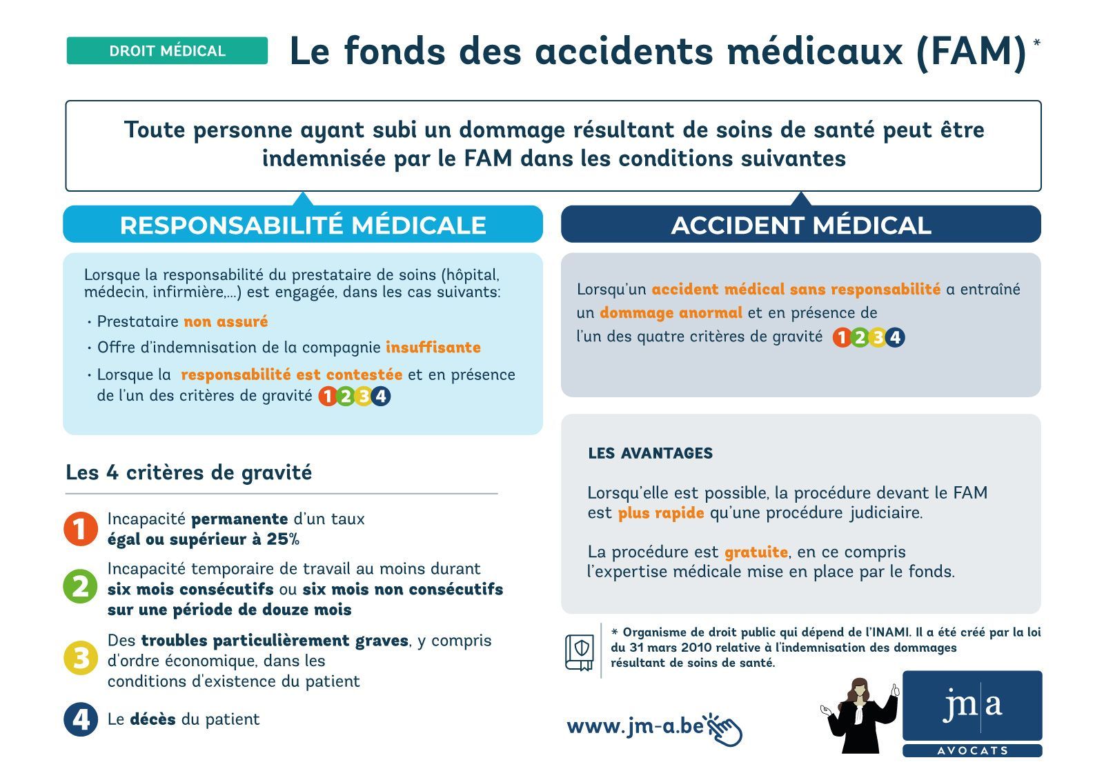 Bien que la procédure judiciaire reste encore inévitable dans certains cas, une troisième voie s'est ouverte en 2010 suite à la création du Fonds des Accidents Médicaux (FAM), organisme de droit public qui dépend de l'INAMI.